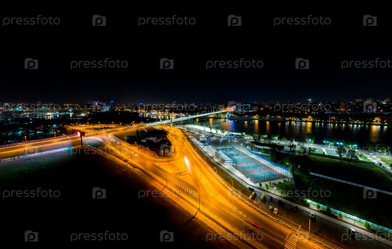 Ростов-на-Дону, Россия. Ночной вид на Ворошиловский мост через реку Дон