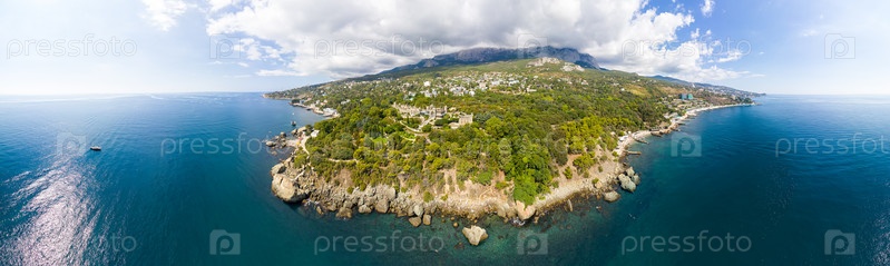 Алупка. Крым. Воронцовский дворец в свете яркого солнца. Лето. С высоты птичьего полета