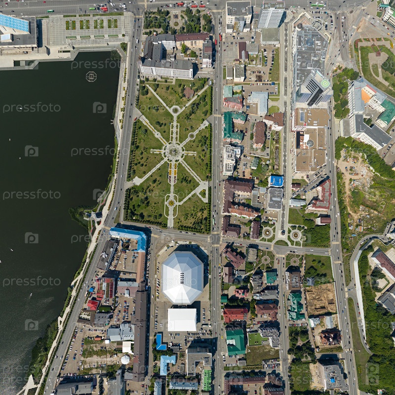 Казань, Россия. Казанский парк Миллениум. Вид камеры вниз