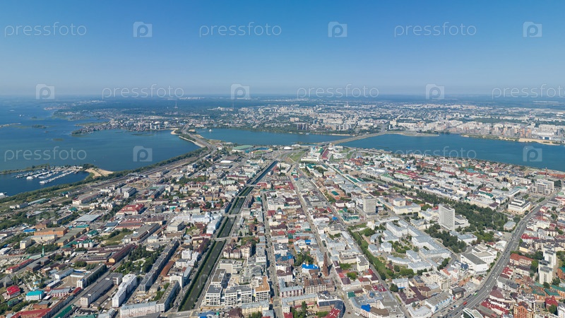 Казань, Россия. С высоты птичьего полета. Панорама Казани