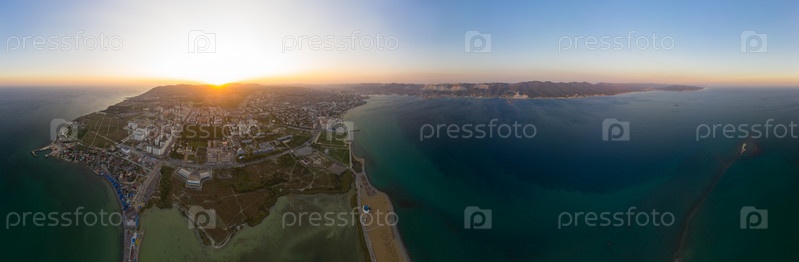 Новороссийск, Россия.Центральная часть города.Суджукская голова.Закат.Паноарма 360.Вид с воздуха