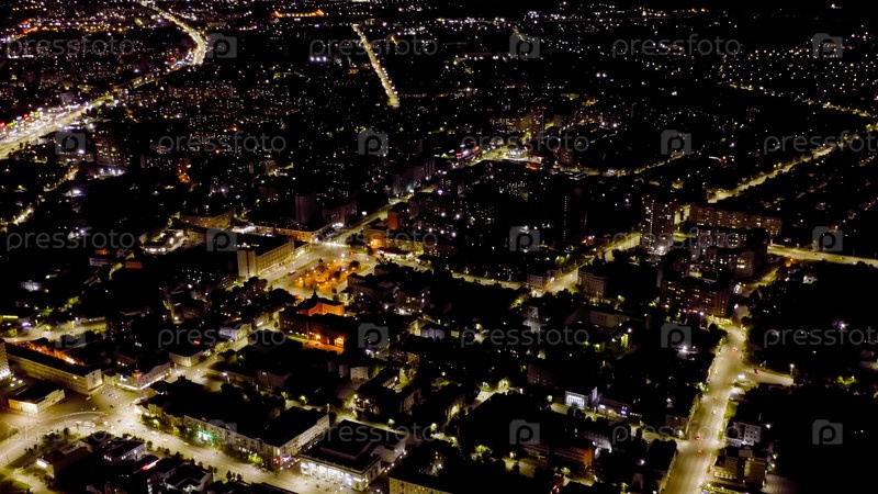 Иваново, Россия. Ночной полет над центром города Иваново, вид с воздуха
