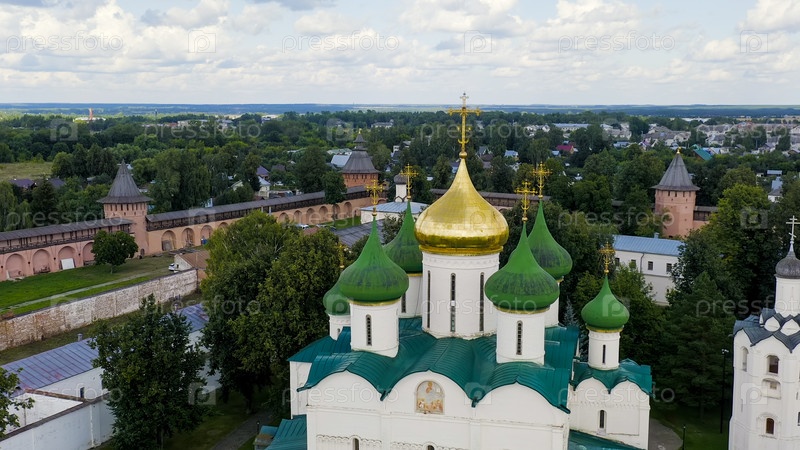 Суздаль, Россия. Полет. Спасо-Евфимиев монастырь. Спасо-Преображенский собор Спасо-Евфимиева монастыря, вид с воздуха