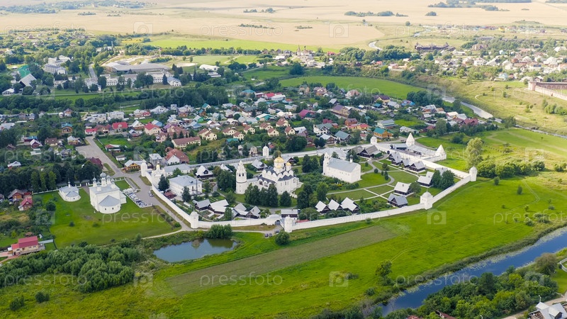Суздаль, Россия. Полет. Свято-Покровский женский монастырь города Суздаля, вид с воздуха