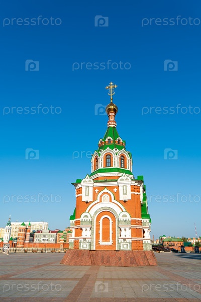 Йошкар-Ола, Россия. Часовня Петра и Февронии Муромских в Йошкар-Оле. Набережная Брюгге
