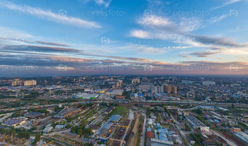 Краснодар, Россия. Панорама города летом. Закат. С высоты птичьего полета