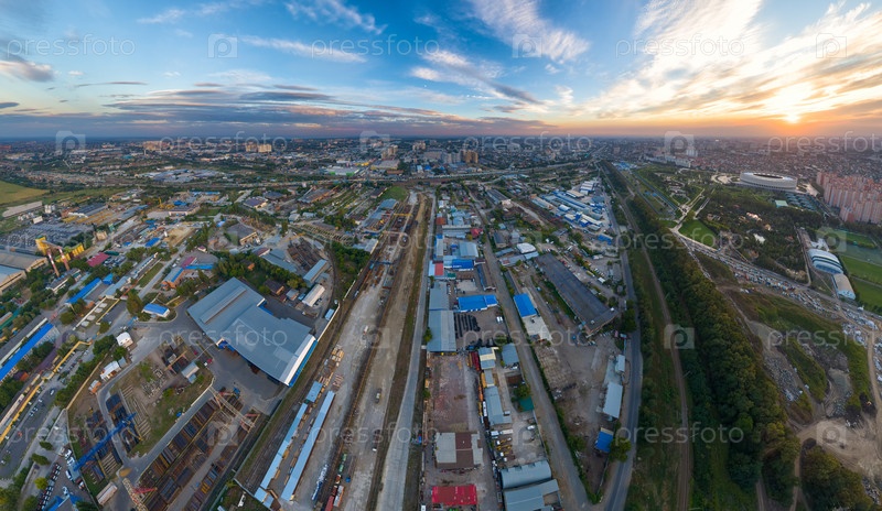 Краснодар, Россия. Панорама города летом. Закат. С высоты птичьего полета