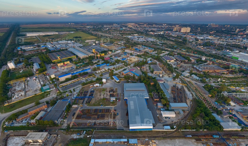 Краснодар, Россия. Панорама города летом. Закат. С высоты птичьего полета