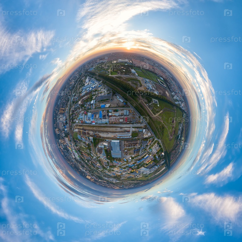 Краснодар, Россия. Панорама города летом. Парк в городе Краснодар. футбольные площадки. Закат. 360-градусный воздушный панорамный астероид