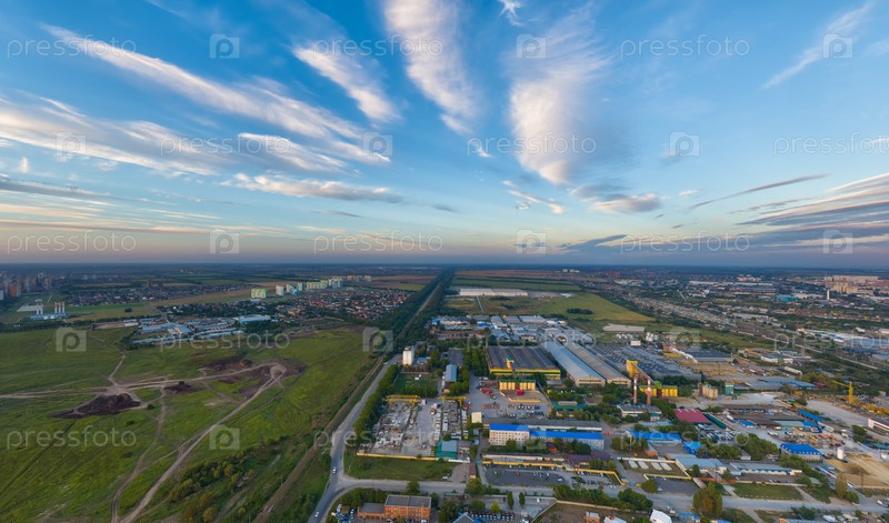 Краснодар, Россия. Панорама города летом. Закат. С высоты птичьего полета