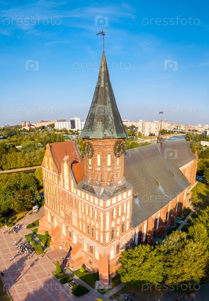 Вид с воздуха Центральная часть города Калининграда, Калининградский собор на острове Канта. Россия