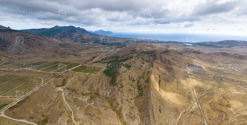 Судак, Крым. Виноградники возле поселка Солнечная Долина. Осень. С высоты птичьего полета