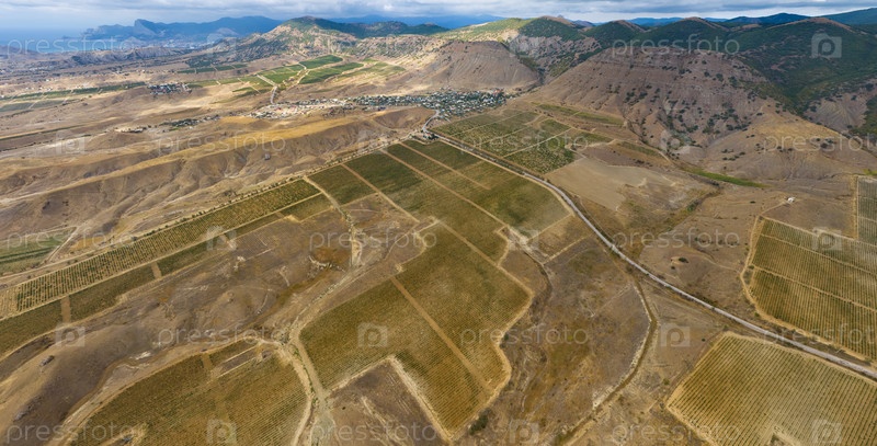 Судак, Крым. Виноградники возле поселка Солнечная Долина. Осень. С высоты птичьего полета