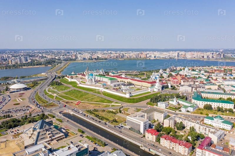 Казань, Россия. Главной достопримечательностью города является Казанский кремль. С высоты птичьего полета