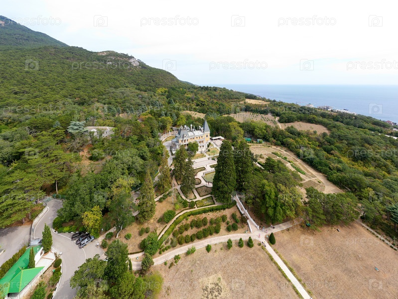 Массандровский дворец императора Александра III расположен в Верхнем Массандре на южном берегу Крыма Дата основания XIX век С высоты птичьего полета