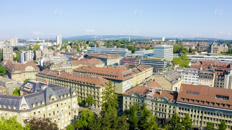 Берн, Швейцария. Центральная часть города. С высоты птичьего полета. Лето