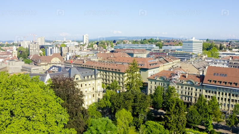 Берн, Швейцария. Центральная часть города. С высоты птичьего полета. Лето