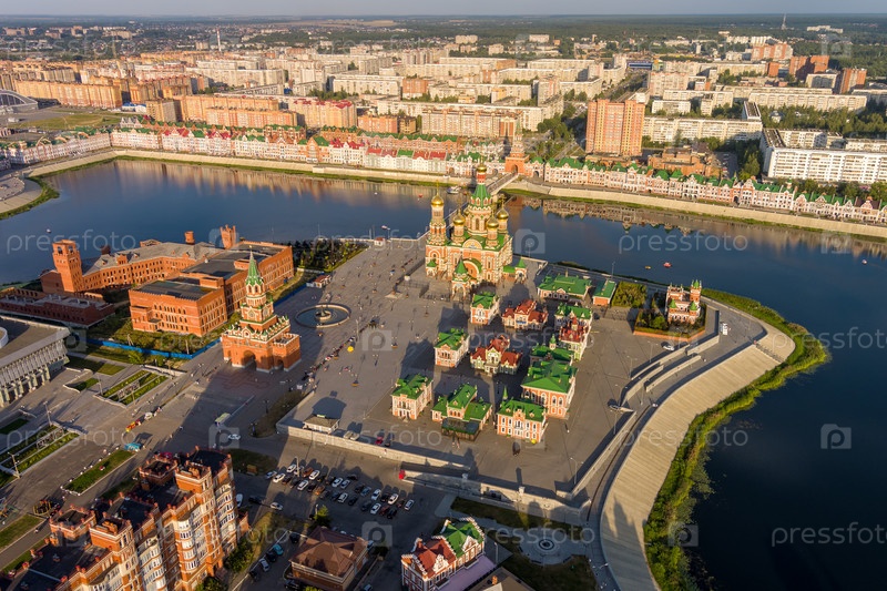 Йошкар-Ола, Россия Панорама центра города во время заката