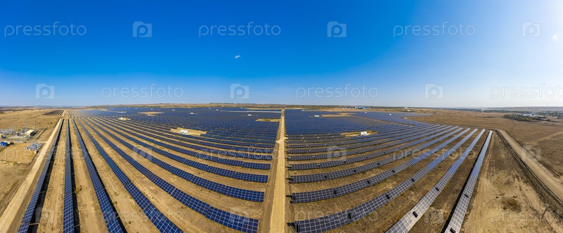 Ставрополь, Россия. Деревня Старомарьевка. Крупнейшая солнечная электростанция в России. С высоты птичьего полета