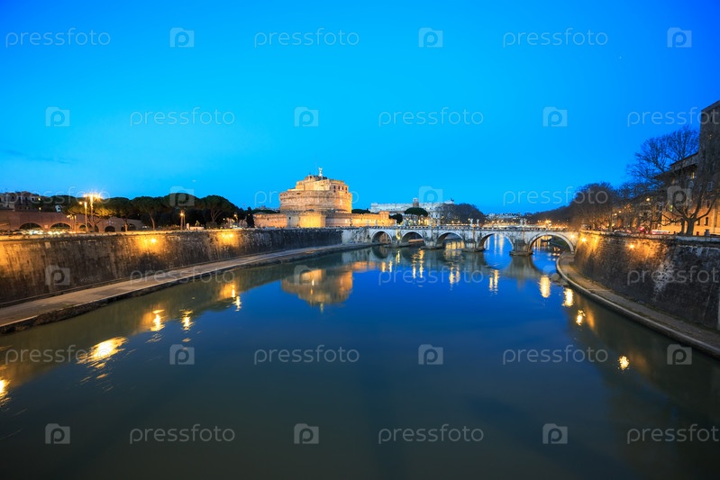 Крепость Сант-Анджело в сумерках, Рим, Италия