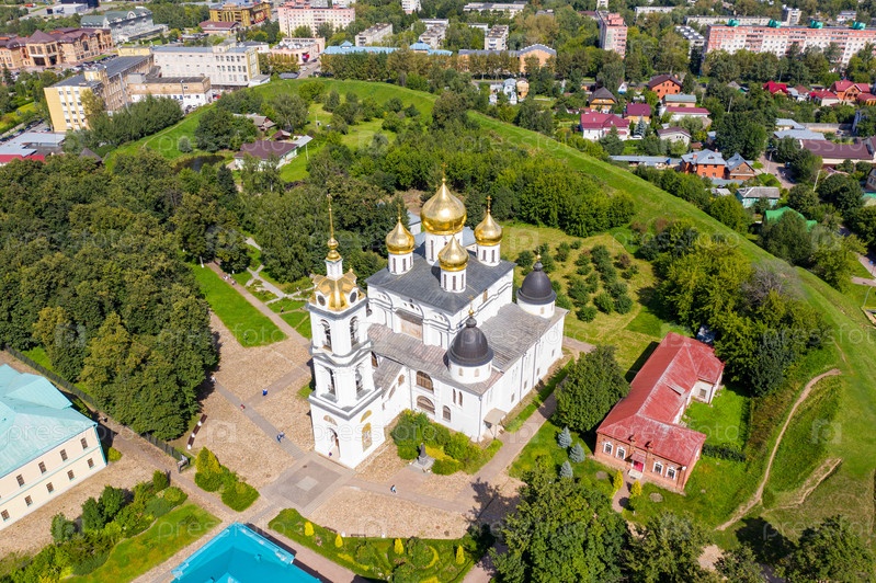 Дмитровский кремль частично сохранившаяся древнерусская крепость XII века. Успенский собор. с высоты птичьего полета