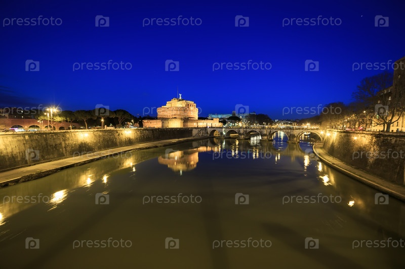 Крепость Сант Анджело ночью, Рим, Италия
