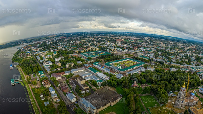 Кострома, Россия. Вид с воздуха на центр города. Красные ряды, площадь Сусанина. Панорама