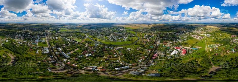 Суздаль, Россия. Панорама летнего города. С высоты птичьего полета. Панорама 360
