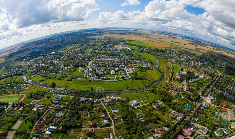 Суздаль, Россия. Панорама летнего города. С высоты птичьего полета