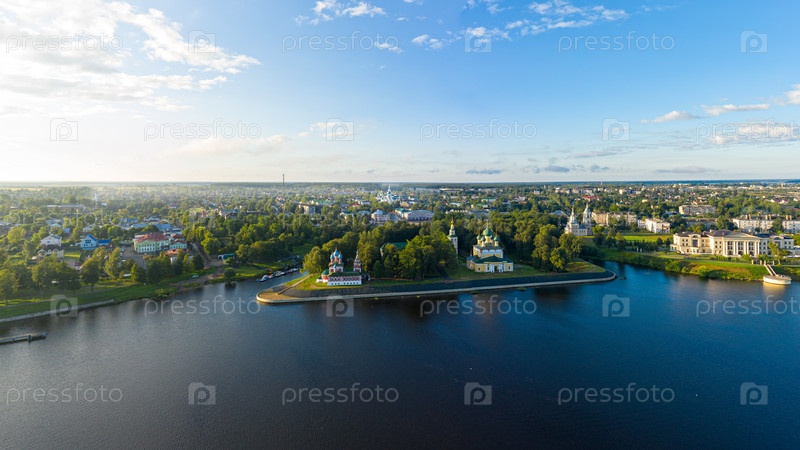 Углич, Россия. Территория Кремля. река Волга. Набережная в Угличе. С высоты птичьего полета