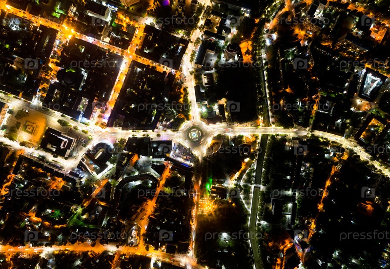 Симферополь, Крым. Советская площадь. Огни ночного города. Вид на город Ночью с высоты