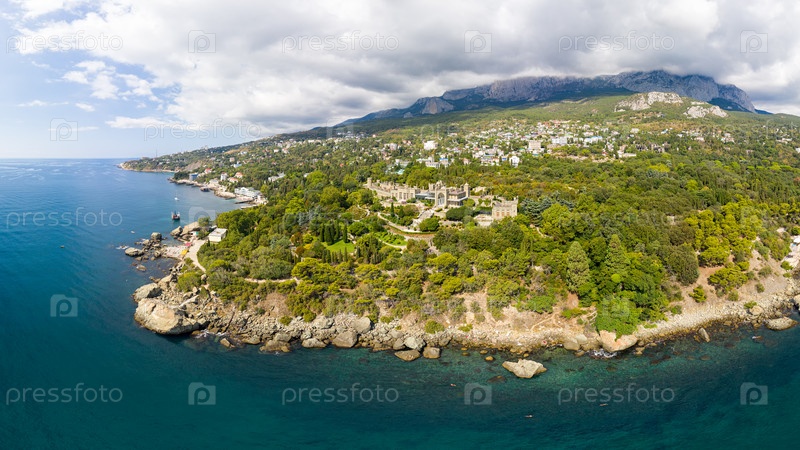 Алупка. Крым. Воронцовский дворец в свете яркого солнца. Лето. С высоты птичьего полета
