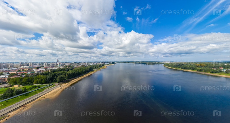 Рыбинск, Россия. Набережная реки Волги. С высоты птичьего полета