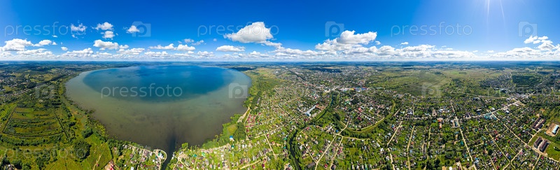 Переславль-Залесский, Россия. Город и озеро Плещеево. С высоты птичьего полета. Панорама 360