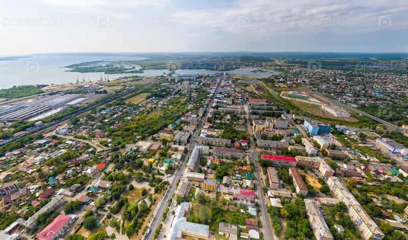 Сызрань, Россия. Аэрофотоснимок центральной части города. Вид на Волгу