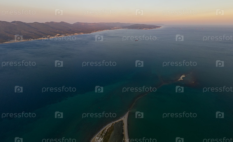 Новороссийск, Россия. Центральная часть города. Суджукская коса. Закат. С высоты птичьего полета