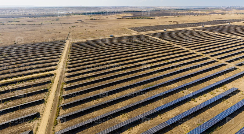 Ставрополь, Россия. Деревня Старомарьевка. Крупнейшая солнечная электростанция в России. С высоты птичьего полета