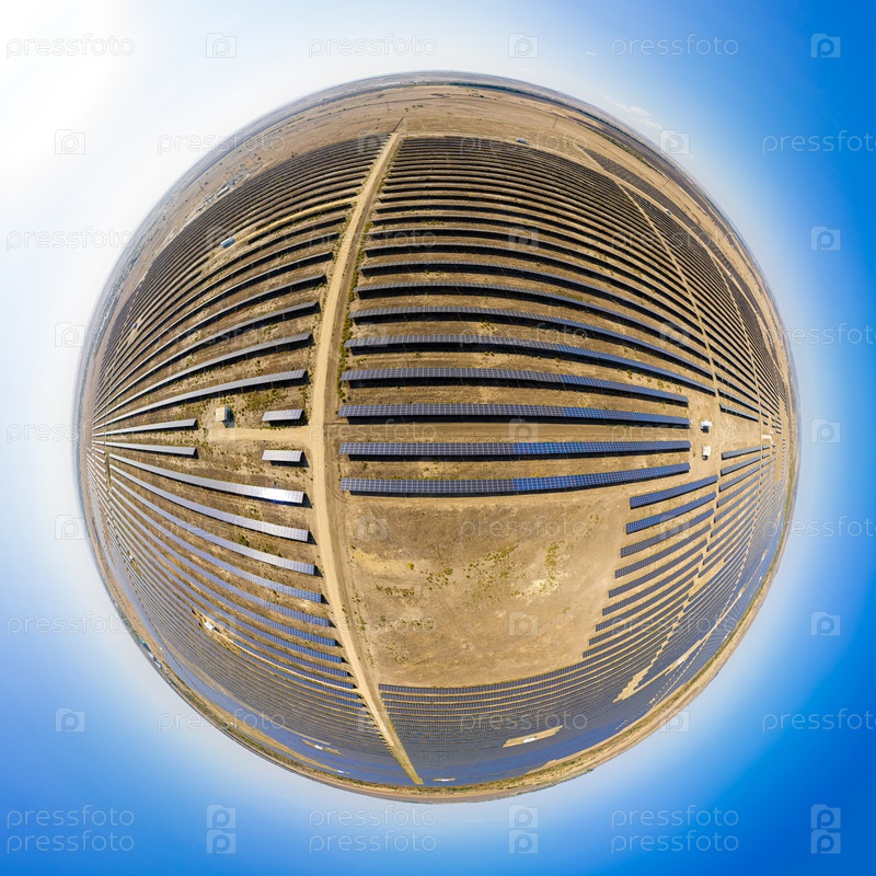 Ставрополь, Россия. Деревня Старомарьевка. Крупнейшая солнечная электростанция в России. 360-градусный панорамный астероид