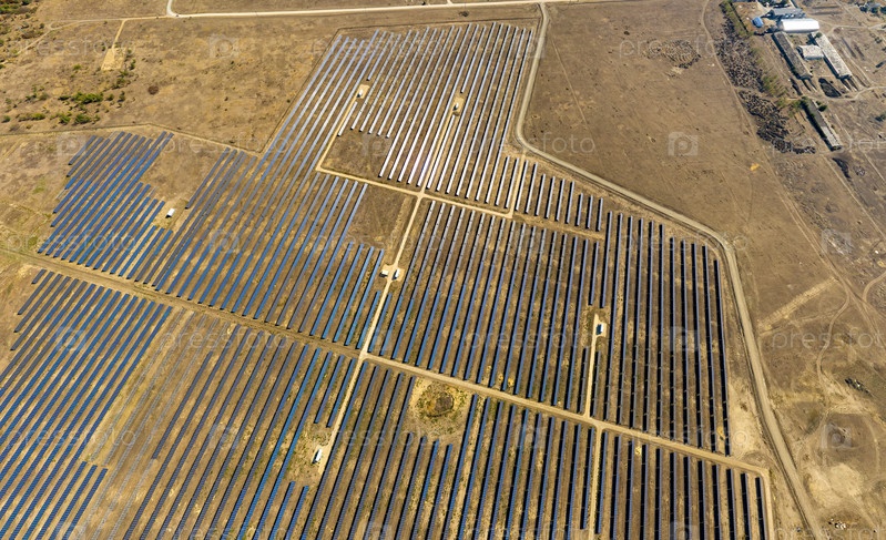 Ставрополь, Россия. Деревня Старомарьевка. Крупнейшая солнечная электростанция в России. С высоты птичьего полета