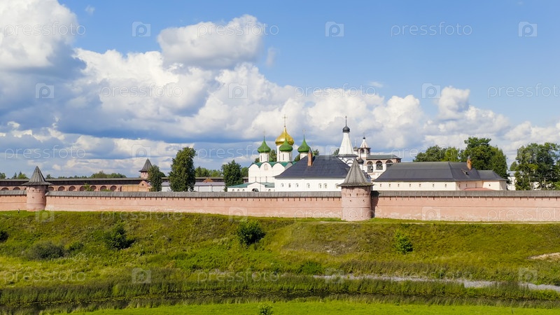 Суздаль, Россия. Полет. Спасо-Евфимиев монастырь — монастырь в Суздале, основанный в 1352 году, вид с воздуха