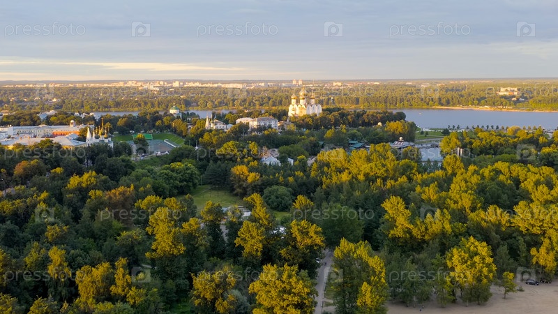Ярославль, Россия. Собор Успения Пресвятой Богородицы (Успенский собор). Время заката, Вид с воздуха