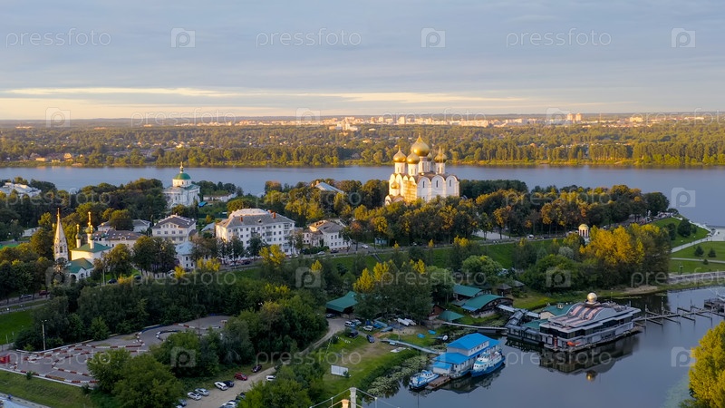 Ярославль, Россия. Собор Успения Пресвятой Богородицы (Успенский собор). Время заката, Вид с воздуха
