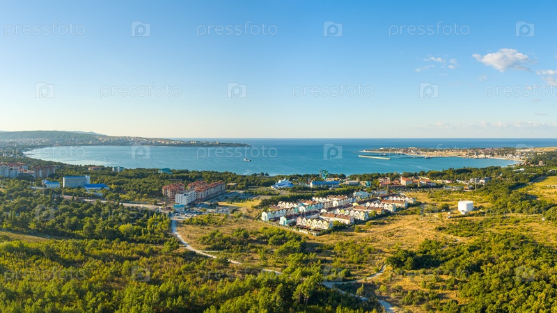 Геленджик, Россия. Панорамный вид на город и залив. Лето. С высоты птичьего полета