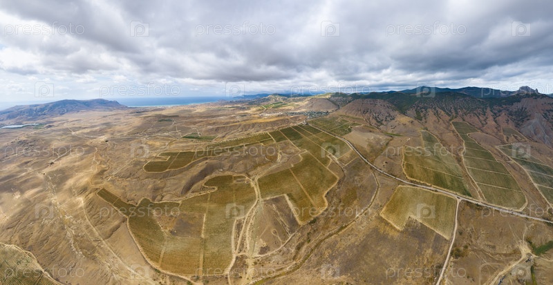 Судак, Крым. Виноградники возле поселка Солнечная Долина. Осень. С высоты птичьего полета