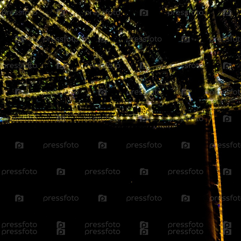 Саратов, Россия. Огни ночного города. Саратовский мост. Набережная реки Волги. С высоты птичьего полета