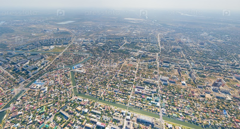 Астрахань, Россия. Панорама города с воздуха летом. С высоты птичьего полета