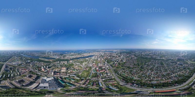 Казань, Россия. С высоты птичьего полета. Сферическая панорама Казани. Полный 360 градусов