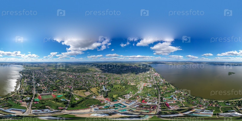 Ростов, Россия. Ростовский кремль. Озеро Неро. С высоты птичьего полета. Панорама 360
