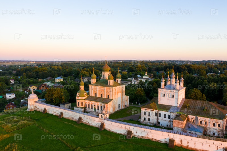 Переславль-Залесский, Россия. Горицкий Успенский монастырь на закате. С высоты птичьего полета