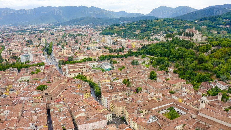Брешиа, Италия. Центральная часть города. С высоты птичьего полета. Лето